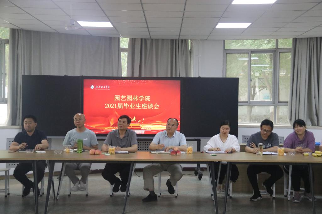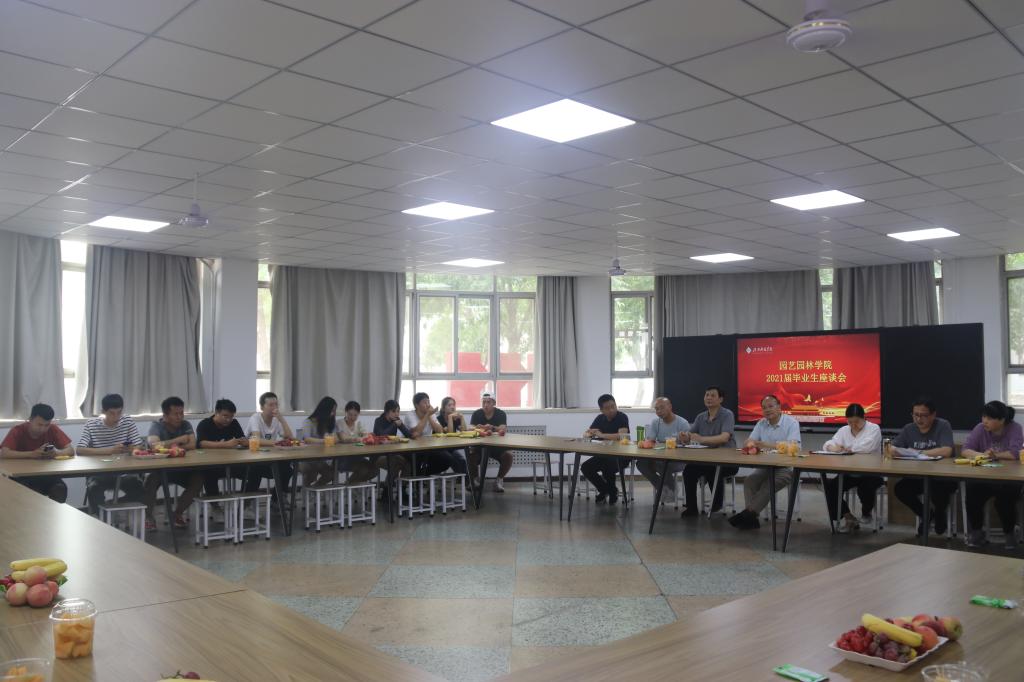 6月16日下午,园艺园林学院于实验楼A段101画室召开2021届毕业生座谈会,学院领导班子全体成员、辅导员、教师代表和毕业生代表共60余人亲切座谈。会议由院党委书记郜庆炉主持。