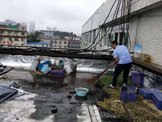 暴雨来袭,党委书记郜庆炉第一时间带队检查学院基础设施排水情况,到实验室查看受灾情况。