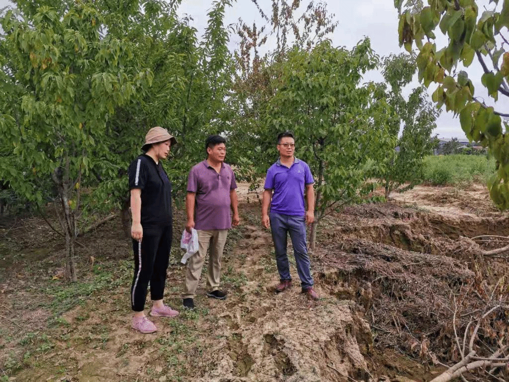 为帮助果农开展生产自救,最大限度减少灾后造成的损失,7月31日新乡市林果产业科技特派员服务团成员周瑞金、李桂荣、王保全等果树产业领域的3名副教授赴平原新区开展灾后生产技术服务。服务团针对地表积水已排净的桃园、樱桃园、梨园,提出果园落果及时清理、翻耕降墒、适当修剪减少蒸发、及时喷施杀菌剂防病和加强叶面肥增强树势等技术措施,并向果农发放了“洪涝灾害后果园管理技术”明白纸,上面附有服务团成员联系方式等信息,便于后期果农技术咨询。