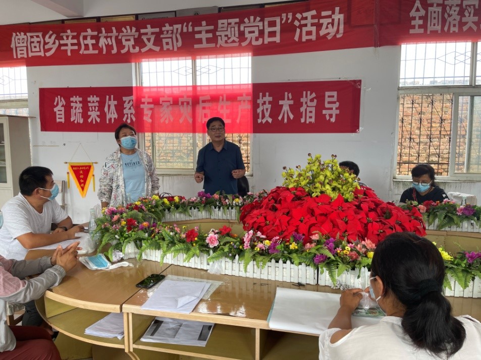 在辛庄村村委会会议室,菜农代表聆听了“暴雨洪灾后如何恢复大棚蔬菜生产”的技术讲座,两位老师就如何修复损毁的蔬菜大棚、如何排水降湿、蔬菜病虫害综合防控、大棚设施及土壤消毒、大棚蔬菜茬口安排、控制番茄苗旺长、番茄苗定植后管理等问题进行了详细讲解,并回答了菜农提出的各种技术问题,随后又到该村蔬菜大棚里进行了现场技术指导。