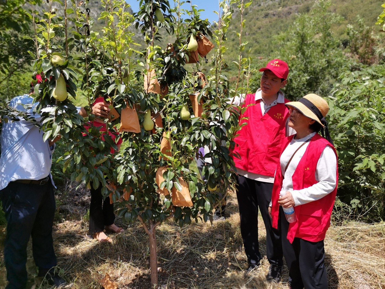 下午,一行人到卫辉为天种植专业合作社调研受损情况并开展服务。该果园为山地果园,占地4000余亩,此次降雨形成的山洪造成果园土壤流失严重,园区道路和水利设施遭受严重损坏,个别地块正值采收期的苹果树被泥石流覆盖。服务团成员在查看果园后,根据不同情况地块提出不同的技术方案,对于土壤流失严重的地段,提出清淤排水、扶正培土、松土晾根、喷施杀菌剂等措施;对于洪灾影响不大的地段,提出加强后期病虫害防控和果实管理等措施。最后,针对该果园存在的面积过大、果树类型过多、管理困难等问题,服务团专家提出了后期发展的指导性建议和意见。