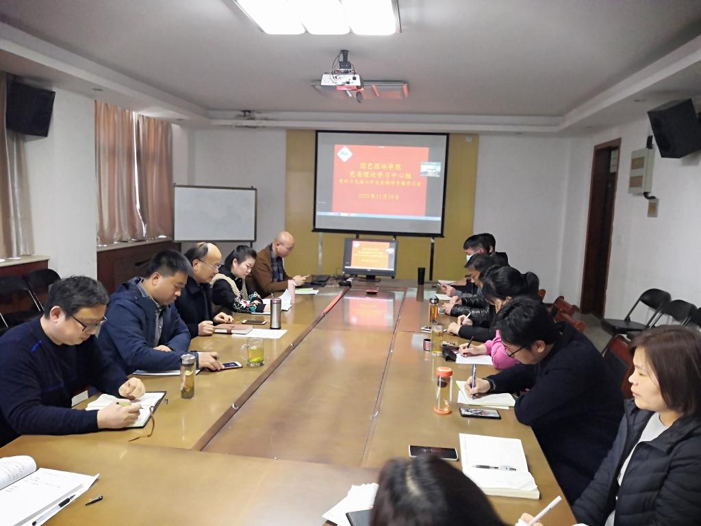 11月18日下午,园艺园林学院党委理论学习中心组(扩大)在实验楼B316会议室举行学习会,集中学习中国共产党第十九届中央委员会第六次全体会议精神。会议采用线上+线下形式,学院党政领导班子成员、党支部书记现场参加会议,其他老师线上参加会议。会议由党委书记郜庆炉主持。