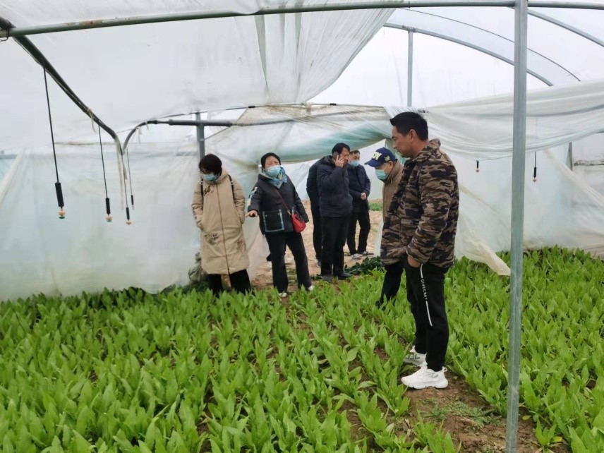 上午,帮扶队员来到练集镇朱集村,听取支部书记对该村脱贫工作和后期乡村振兴工作的汇报后,实地考察了种植大户的冬小麦生长状况,对冬小麦返青的肥水管理和病虫害防治给出了意见建议。陈碧华教授开展了大葱育苗和种植技术现场培训,重点介绍了具有技术成熟、无风险、收益高等优点的大葱与马铃薯轮作技术。周瑞金副教授为果农讲解了葡萄修剪、早春病虫害防治、桃树大树移栽后管理技术等内容。在阳博绿色生态园周瑞金副教授查看了草莓生长情况后,就草莓成熟期温湿度控制、病害防控做了指导,并提出延长草莓产业链、增加收益的建议。