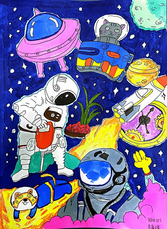本次活动将艺术之美与科技之光相结合,绘画的作品不仅是对航天征途的展望,更是献礼与祝福,通过对航天、太空、宇宙飞船等航天元素的描绘,弘扬了我国航天事业的伟大成就,也激发了学生勇于探索宇宙星辰、畅想未来的热情。