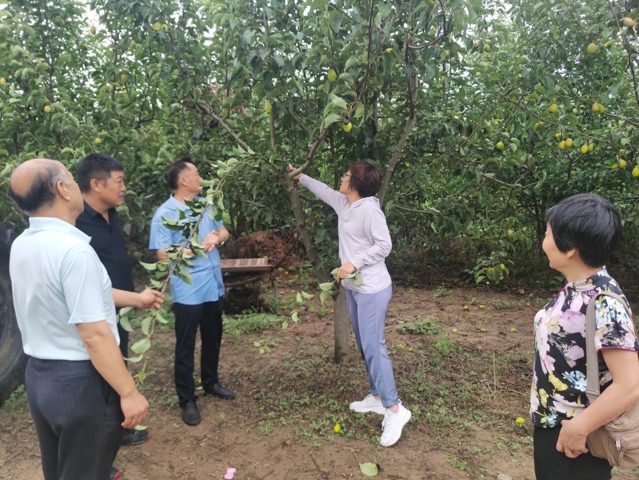 在商水县和畅中小学研学基地,几位老师参观了解了室内、室外活动场地,负责人对主题活动场地、研学设施、自然人文景观、今后发展思路、存在问题和困难等情况作了详细介绍。周瑞金就研学基地科普用树的树种选择提出建议,在查看了现有果树生长情况后,指出观赏果树的整形修剪方法和要求,并对果树夏季修剪进行示范指导,就园区果树管理注意事项进行解答。最后,对研学基地开设园艺植物识别科普课程提出建议,后期可为基地技术人员开展相关内容专项培训。