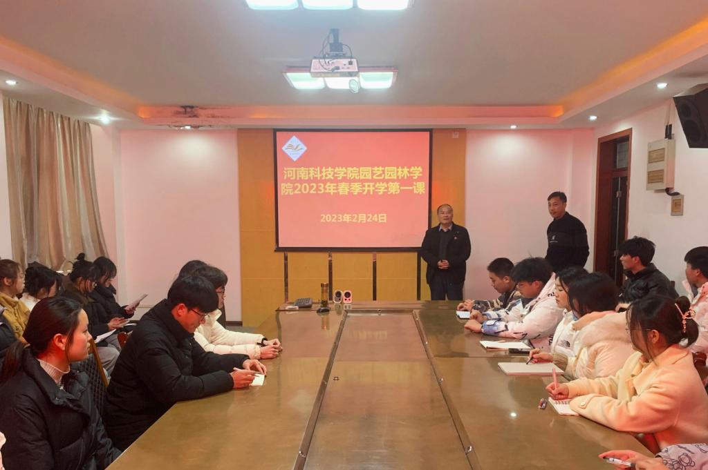 2月24日,园艺园林学院党委书记郜庆炉在实验楼B段316会议室以“学习党的二十大精神,争做新时代有为青年”为主题,为学生讲授2023年春季开学第一课,2022级全体班委参加了本次学习。