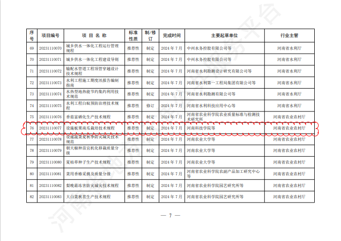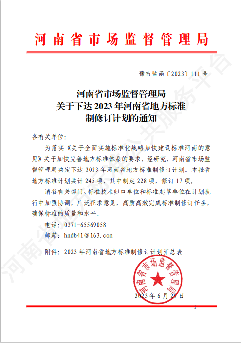 按照河南省市场监督管理局《2023年河南省地方标准立项指南》的要求,通过认真填报《河南省地方标准建议书》、技术标准草案、生产试验相关数据等材料,并顺利通过了形式审查、专家初评、现场答辩和评审等环节。