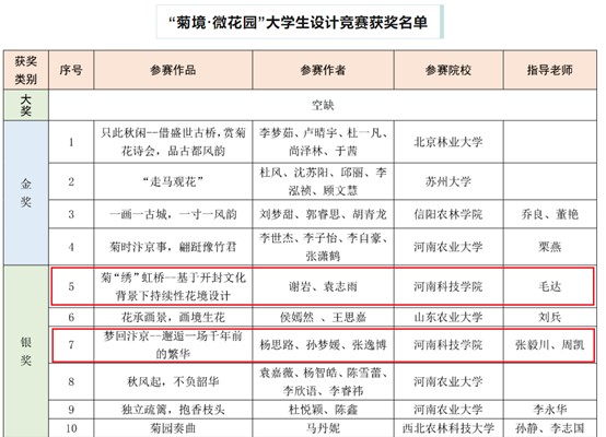 9月12日,中国开封第41届菊花文化节“菊境·微花园”大学生设计竞赛终评评审会在北京召开,园艺园林学院学生荣获2项银奖和4项优秀奖。