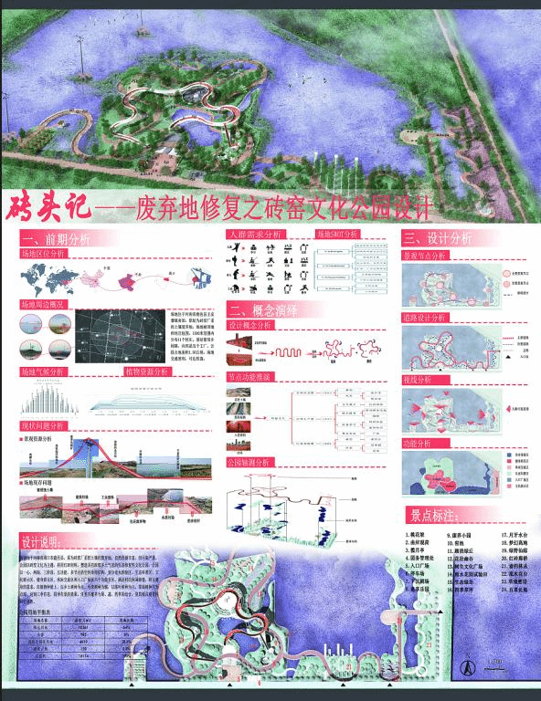 一等奖作品:本科生许文华团队作品“石头记——废弃地修复之砖窑文化公园景观设计”(指导教师:张毅川)。三等奖作品分别是:本科生李飞作品“红绿共生·区域共荣——基于红色文旅产业视角下的村庄规划”(指导教师:马珂、毛志远);本科生吴梦婷团队作品“知野——基于自然理念的乡村绿地景观改造设计”(指导教师:赵梦蕾、王艳丽);研究生吴沫雨团队的作品“无极——乡村振兴背景下陈家沟太极园主题景观规划设计”(指导教师:宋利利、姚正阳);研究生张逸博作品“乡村废弃用地景观设计改造——基于桃花源记中人居环境与空间营造手法的思考进行”(指导教师:张毅川、乔丽芳)。