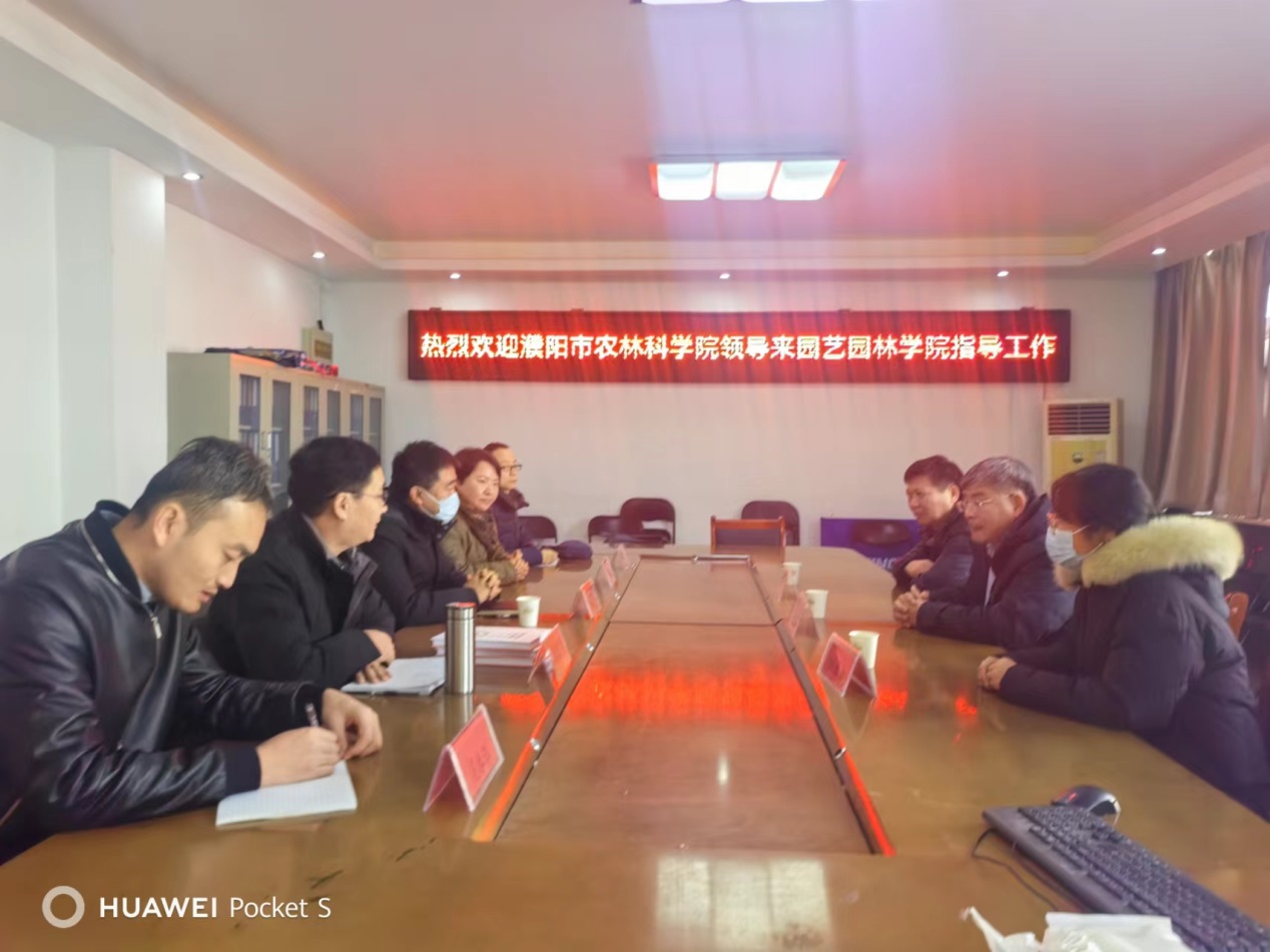 1月29日,濮阳市农林科学院副院长陈建芳、纪委书记马红旗、助理研究员顾桂兰一行来园艺园林学院洽谈有关项目交流合作事宜。园艺园林学院副院长张毅川、南瓜研究团队负责人李新峥和部分团队成员参加了会议。
