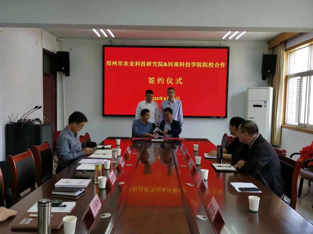 上午,郭超杰一行5人来到郑州市农业科技研究院实验基地,基地负责人带领大家参观基地的园艺设施建设和运营管理,随后到郑州市农业科技研究院进行交流座谈,与会双方简单介绍单位基本情况、科研现状和远景规划,并就科研平台、教学实习、学生就业、科研人员交流合作等达成初步意向,本着优势互补和共赢发展,双方还就设施蔬菜工厂化生产关键技术研究签订合作协议。