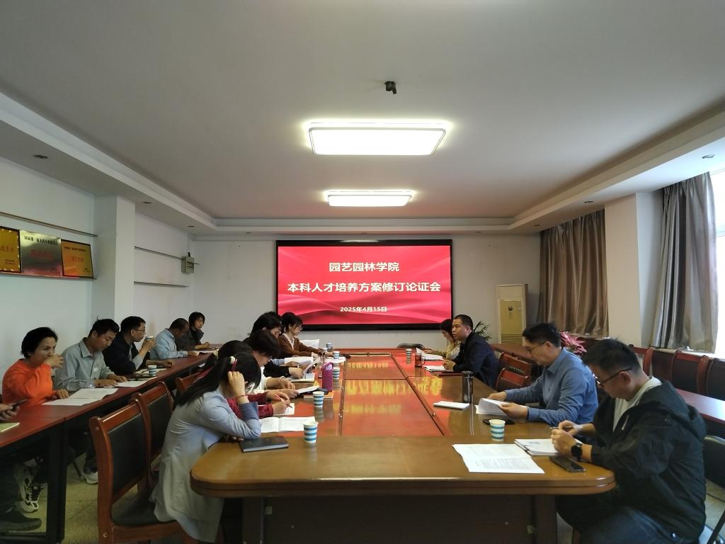 4月15日下午到16日上午,园艺园林学院召开2025版本科人才培养方案修订工作论证会。河南农业大学刘保国教授、华北水利水电大学范钦栋教授、学院副院长张毅川、教学副院长贾文庆、各专业负责人、各教研室主任参加了论证会。会议由副院长贾文庆主持。