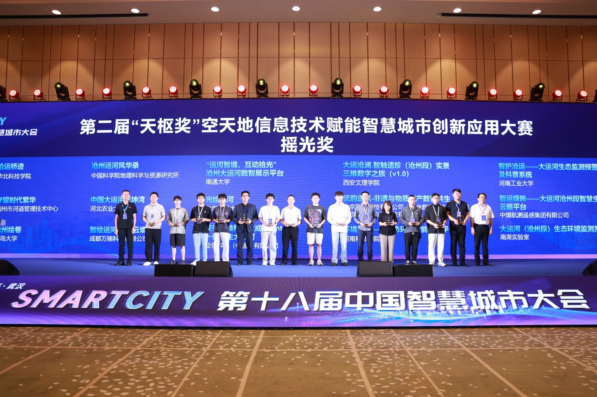 6月26—28日,由中国测绘学会主办的第二届“空天地信息技术赋能智慧城市创新应用大赛”颁奖仪式在武汉顺利举办。本次竞赛共吸引了中山大学、同济大学、中南大学、中国地质大学等全国200多所高校及公司队伍参赛(大赛奖项设有天枢奖、天璇奖和摇光奖),经过提交作品、网评初赛,最终同一赛道有19支队伍进入总决赛。经过激烈角逐,我院韩其晟老师指导的风景园林专业2024级硕士研究生裴河洋、布彩志、张庆娇、赵梦薇同学的参赛作品《环境卫士——生态环境智能监测平台》在生态环保赛道中脱颖而出,荣获大赛摇光奖。