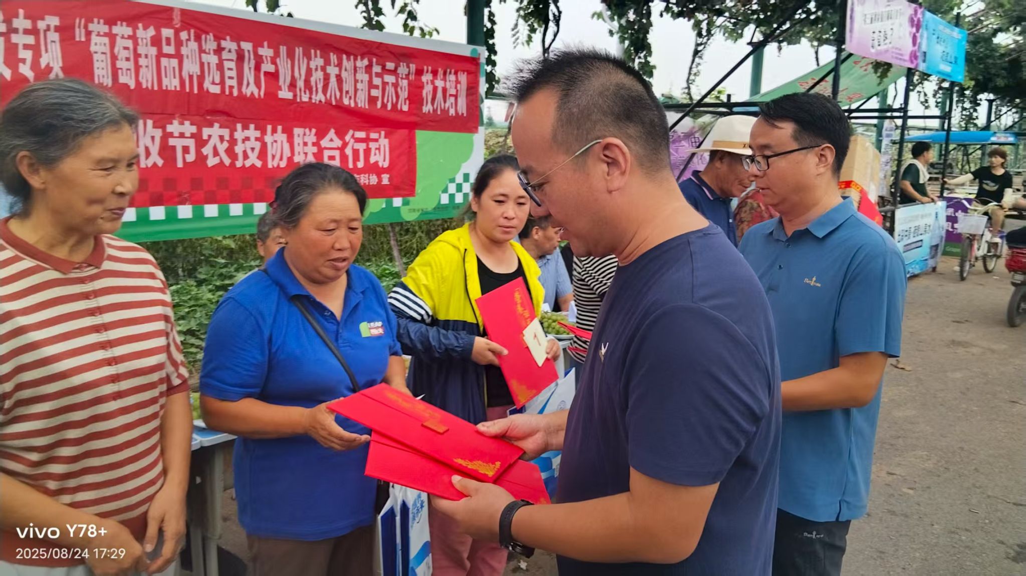 此次活动是学院深化“产学研用”融合、助力乡村振兴的实践。团队长期秉持服务使命,将科研成果对接产业痛点,不仅擦亮南张门葡萄“河南省名特优新农产品”招牌,还带动周边7个村486户农民增收。“我们希望用科技为葡萄产业赋能,让每串葡萄成为乡亲们的‘甜蜜希望’。”汪显友的话,道出了团队服务地方、助力乡村振兴的初心。