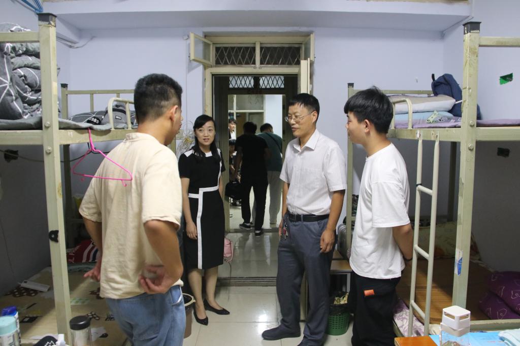 晴空万里,金风送爽,来自四面八方的学子带着梦想和憧憬,加入了河南科技学院资源与环境学院,开启了新的征程。9月9日,学院党委书记高扬帆、院长王洪亮、副院长石明旺以及团委辅导员老师来到学生宿舍,看望刚刚入校的2018级新同学。在走访过程中,老师们亲切地和同学们交流沟通,查看宿舍各种设施是否完善,叮嘱新同学保持宿舍内务整洁,勉励他们友爱互助、共同努力学习。党委书记高扬帆特别提醒新生们要提高警惕,不要轻信来宿舍推销商品的人员,谨防上当受骗;院长王洪亮提醒大家注意宿舍的安全,做到人走断电,出门关好门窗,妥善保管自己的贵重物品。热情的欢迎,亲切的关怀,让新生们感受到了资环学院大家庭的温暖。