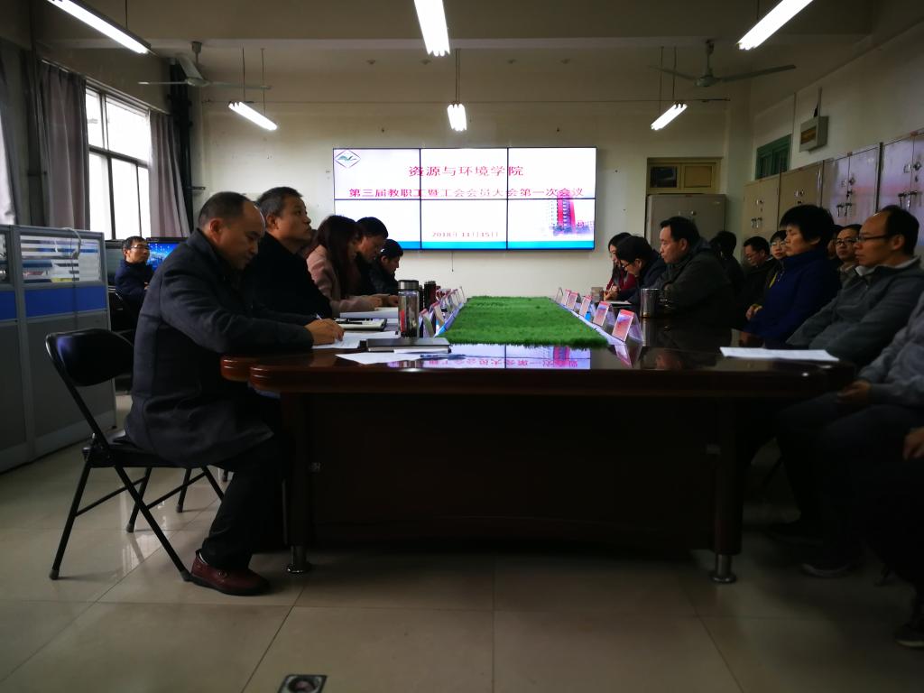 11月15日下午,在实验楼E307会议室,资源与环境学院第三届工会会员大会第一次会议暨校“双代会”代表选举大会举行,学院全体教职工参加大会。会议由资源与环境学院党委副书记刘军锋主持。