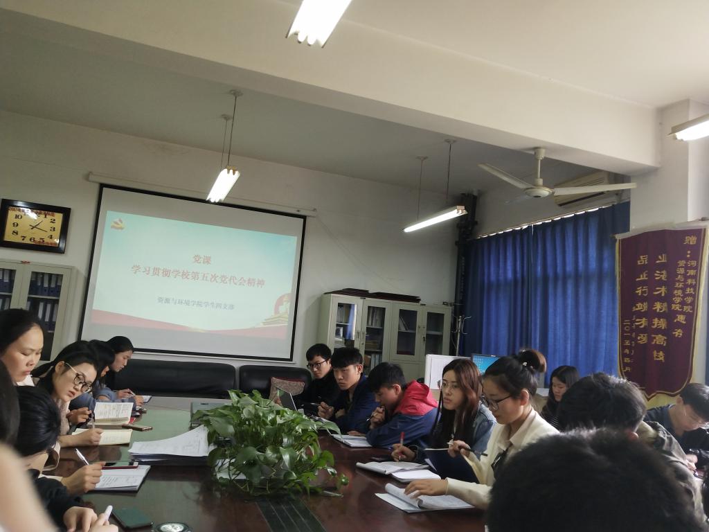 为深入学习贯彻校第五次党代会精神,在学院党委的指导下,资源与环境学院师生各党支部创新学习形式,认真学习贯彻校第五次党代会精神。