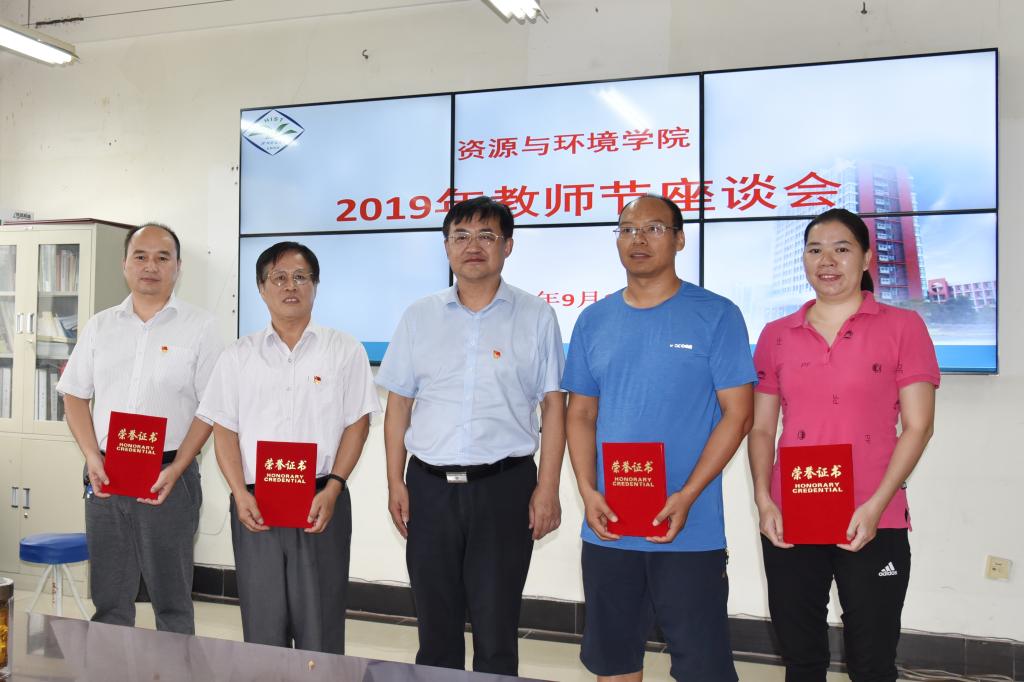 座谈会开始前,贺杰为2019年校级优秀教育工作者和优秀教师颁发荣誉证书并合影留念。