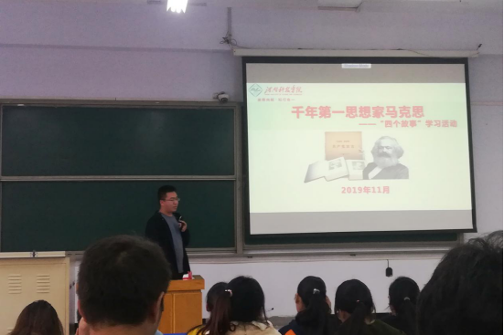 利用主题班会讲。各年级辅导员充分利用主题班会、微信群、qq群宣传等形式,积极开展讲好“四个故事”活动,引导学生主动了解更多的党的故事、革命的故事,了解马克思主义、中国共产党的发展光辉历程,培养爱国之情、砥砺强国之志、实践报国之行。