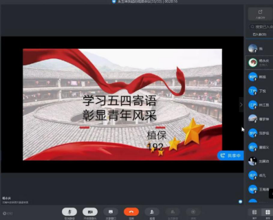 各团支部通过QQ群、微信群、腾讯会议、钉钉等多种平台开展线上主题团日活动。习近平总书记深情寄语,高度赞誉当代中国青年的担当精神,希望青年在实现中华民族伟大复兴中国梦的新长征路上奋勇搏击。温暖的话语、热忱的鼓励,饱含着党的领袖对青年一代的真情关怀,学生们表示要争做“五四”精神的传播者,以拼搏践行初心使命、用行动担当时代重任,让青春在党和人民最需要的地方绽放绚丽之花!