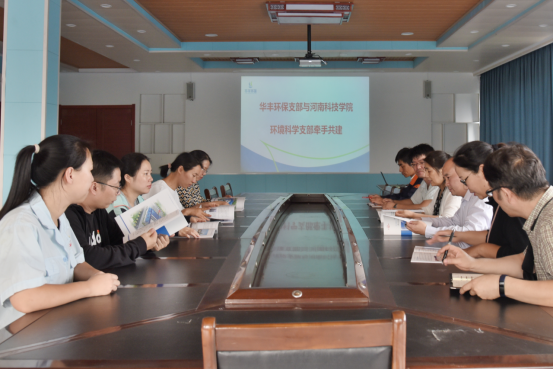 资源与环境学院党委书记高扬帆介绍了我校的基本情况以及资源与环境学院党建工作的开展情况,就双方支部共建提出了自己的想法和建议,希望通过党支部的结对共建,搭建我院师生与企业之间桥梁,提升广大党员教师实践教学技能,也为大学生提供教学实习场所,促使广大师生更加熟悉行业需求,了解企业真实情况,通过加强共建,实现合作共赢。环境科学党支部书记周凌云表示,今后多与企业加强联系沟通,通过“支部牵手共建”,为学院师生搭建学习交流的平台,实现合作共赢。