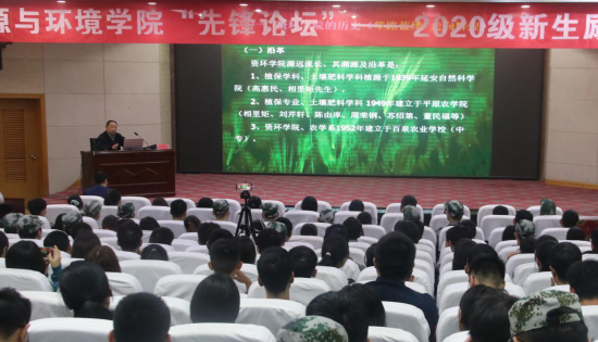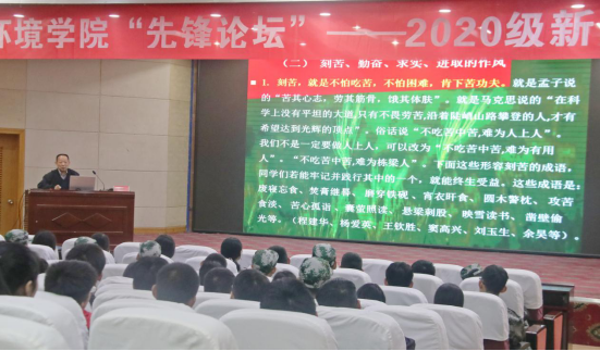 王运兵教授从资源与环境学院的历史、现状、专业特色、校友风采等方面进行了详细讲解。王运兵教授在报告中对同学们提出五点要求,一是树立正确的人生观;二是要选取适合自己的发展奋斗目标;三是有良好精神与作风;四是品德修养和勤奋学习相结合,五是尽快适应大学生活。