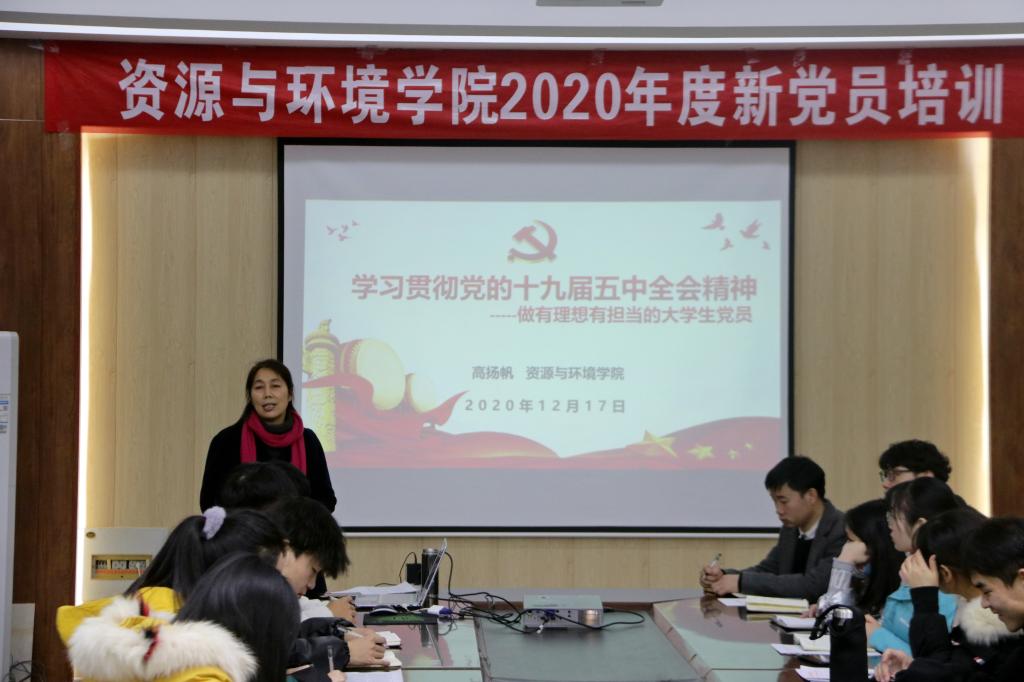 为进一步加强新党员的培养教育工作,提升党员的理论学习自觉性,强化党员意识,增强党性修养,引导他们更好地发挥先锋模范作用,资源与环境学院于12月17日至12月25日开展了2020年度新党员的集中培训,50余名新党员参加了此次培训。