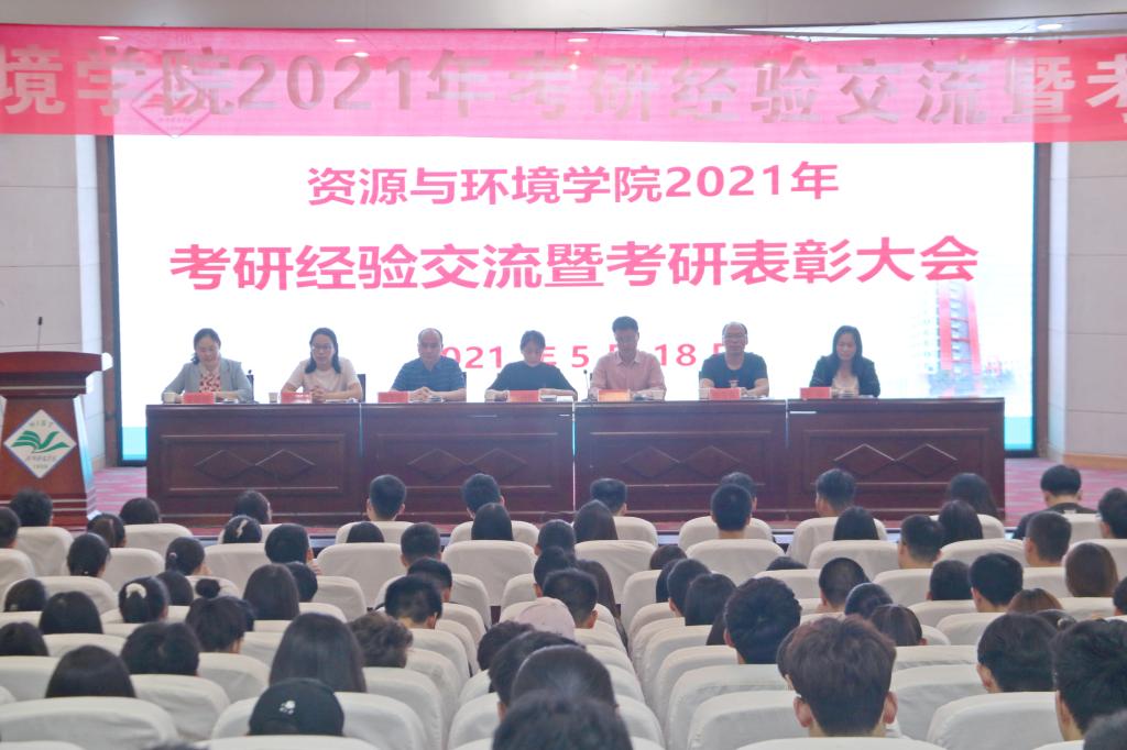 5月19日上午,资源与环境学院在图教201举行2021年考研经验交流暨考研表彰大会。资源与环境学院党委书记高扬帆、院长王洪亮、副书记刘军锋、教师代表田雪亮、周凌云、王菲出席会议,2021届考取研究生的学生及低年级学生代表共300余人参加会议。会议由院团委书记姜丽娟主持。