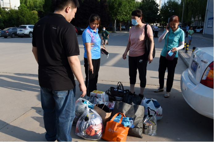 为了捐赠工作的有序开展,党委书记高扬帆、党委副书记刘军锋、副院长王国昌共同把捐赠物品移交给在子弟小学驻扎的学校受灾群众安置服务小组工作人员,委托他们把合适的物品发放给有需要的受灾群众及其子弟。