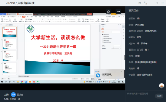 为了加强对2021级新生理想信念的教育,帮助他们规划好大学生活,9月15日至17日,资源与环境学院党委书记高扬帆、院长王洪亮、党委副书记刘军锋分别就理想信念教育、校情校史与学业规划、大学生活适应教育为同学们带来了一场场丰富多彩的视听盛宴。