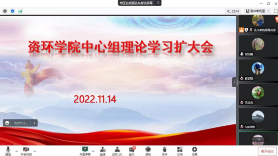 11月14日晚,资源与环境学院召开中心组理论学习扩大会。学院领导班子、党委委员、支部书记参加会议,会议由学院党委书记高扬帆主持。