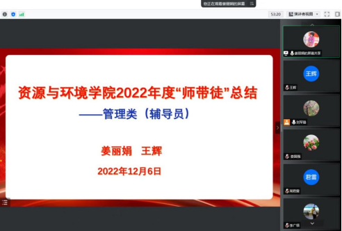 12月7日上午,资源与环境学院举行线上“师带徒”座谈会。校工会副主席娄国强,学院党委书记高扬帆、院长王洪亮、“师带徒”活动参与教师及学院新进教师共二十余人参加会议。会议由院党委副书记刘军锋主持。