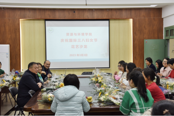 筑梦新时代,巾帼绽芳华。为进一步丰富广大女教师的精神文化生活,3月3日晚,在三八妇女节到来之际,资源与环境学院分工会组织全院女教师开展“庆三八花艺沙龙”活动。校工会副主席娄国强,资源与环境学院党委书记高扬帆、党委副书记刘军锋出席活动。