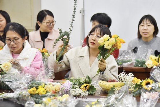 活动结束后,大家相互交流技艺、欣赏花束、拍照留念,尽情享受闲适时光。花艺活动的开展,激发了女教师们的创新思维,进一步增强了团队凝聚力,绽放巾帼美。