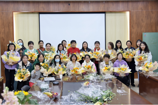 晚上七点半左右,实验楼E307会议室内欢声笑语、花香弥漫,女教师们相聚一堂,共庆佳节。