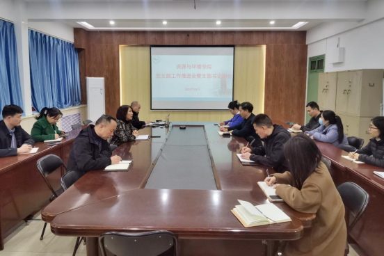 3月16日下午,资源与环境学院在实验楼E307会议室召开党支部工作推进会暨支部书记例会,院党委书记高扬帆、党委副书记刘军锋、党建组织员张少颖及各支部书记、支部委员参加会议。会议由高扬帆主持。