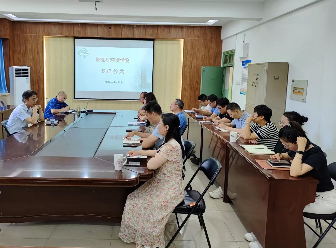6月12日,资源与环境学院在实验楼E307会议室成功举办第三期书记沙龙活动。沙龙由学院党委书记王鲁伟和党委副书记刘军锋主导,昆虫学教研室全体教师10余人积极参与沙龙。