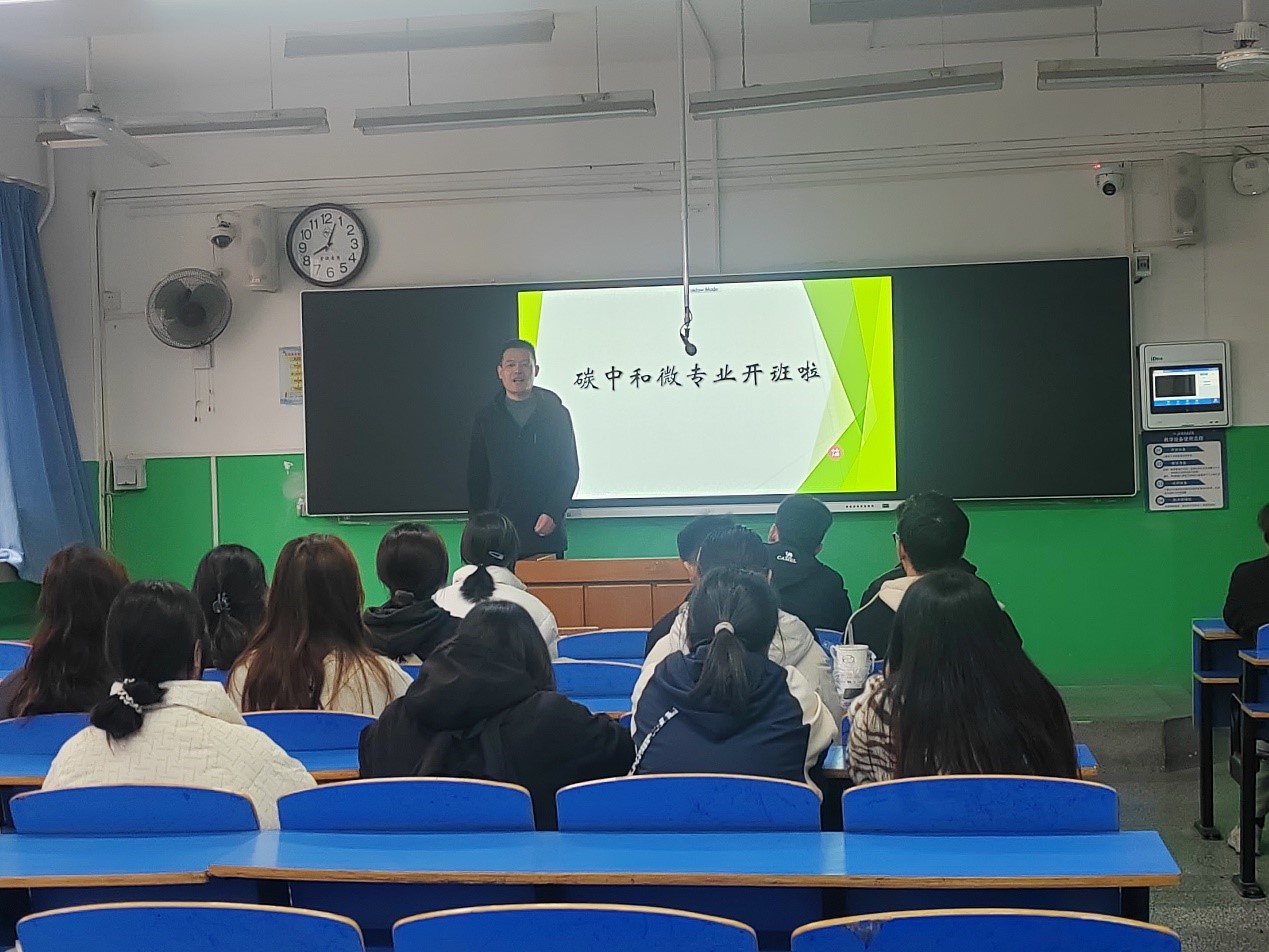 11月16日,我校首届 “碳中和”微专业开班典礼在2302教室举行。资源与环境学院副院长孔凡彬、新乡市碳汇计量检测中心代表王占辉、国家电网新乡公司高级工程师刘沛铮以及微专业教师代表和该微专业全体学生出席典礼。开班典礼由微专业负责人周凌云主持。