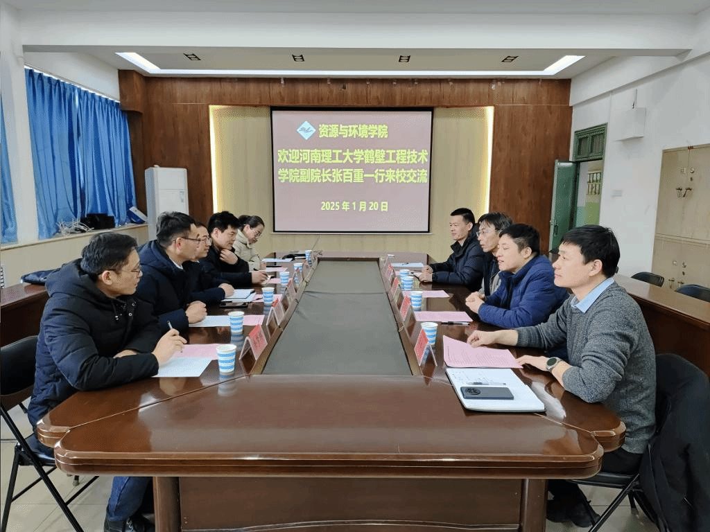1月21日下午,河南理工大学鹤壁工程技术学院党委委员、副院长张百重一行7人来我院调研交流。资源与环境学院党委书记王鲁伟、副院长王国昌、孔凡彬、李松伟及学院相关教师参加了调研。