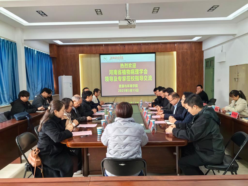 3月15日,河南省植物病理学会党委书记、副理事长兼秘书长吕国强,理事长张猛,学会副理事长宋玉立、韩世平等一行人到我院调研交流。学院党委书记王鲁伟、院长刘润强、副院长孔凡彬、李松伟、学术副院长周锋、资产处副处长、学会常务理事陆宁海及植物病理学科相关教师参加了此次交流活动。双方围绕植物病理学科建设、科研合作及党建工作等展开深入研讨,共商协同发展新路径。