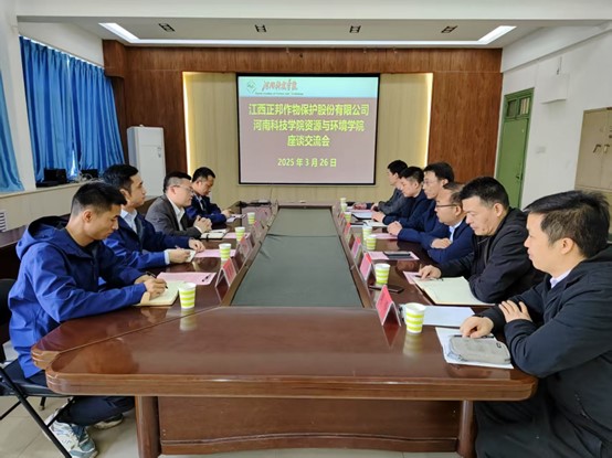 3月26日上午,江西正邦作物保护股份有限公司总经理潘文康一行来我院交流。资源与环境学院党委书记王鲁伟,院长刘润强,副院长王国昌、孔凡彬、李松伟、周锋,党政办主任李新安参加了此次交流活动。