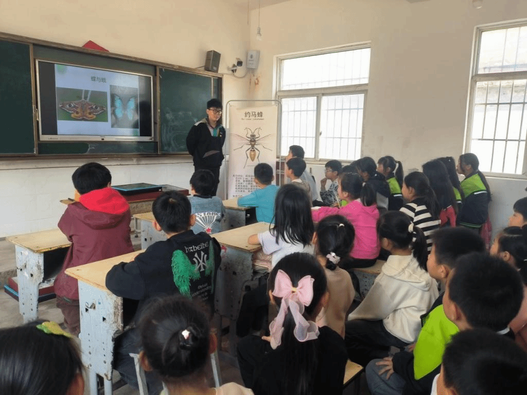 科普组的活动中,硕士研究生代表伏烔化身为知识的传播者,他以生动有趣的方式讲解,并借助精美的昆虫标本展示,向小学生们详细介绍了光肩星天牛、蜜蜂等昆虫的生活习性和生态价值。孩子们听得聚精会神,眼中闪烁着对自然探索的渴望,这场科普之旅成功点燃了他们内心深处探索自然奥秘的火种。
