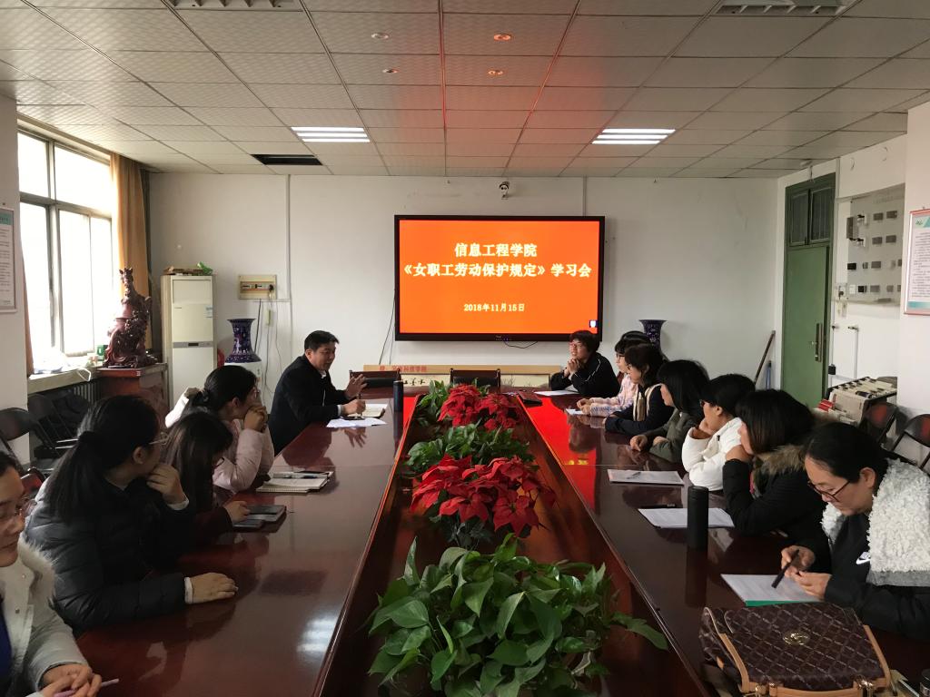 为更好的保护女教职工身心健康,进一步增强女教职工的法律意识,提高女教职工维护自身合法权益的能力。11月15日,我院组织全院女教职工学习中华人民共和国国务院令第619号《女职工劳动保护特别规定》和河南省人民政府令第186号《河南省女职工劳动保护特别规定》,并对规定的相关内容进行解读。会议由党委副书记张建设主持。