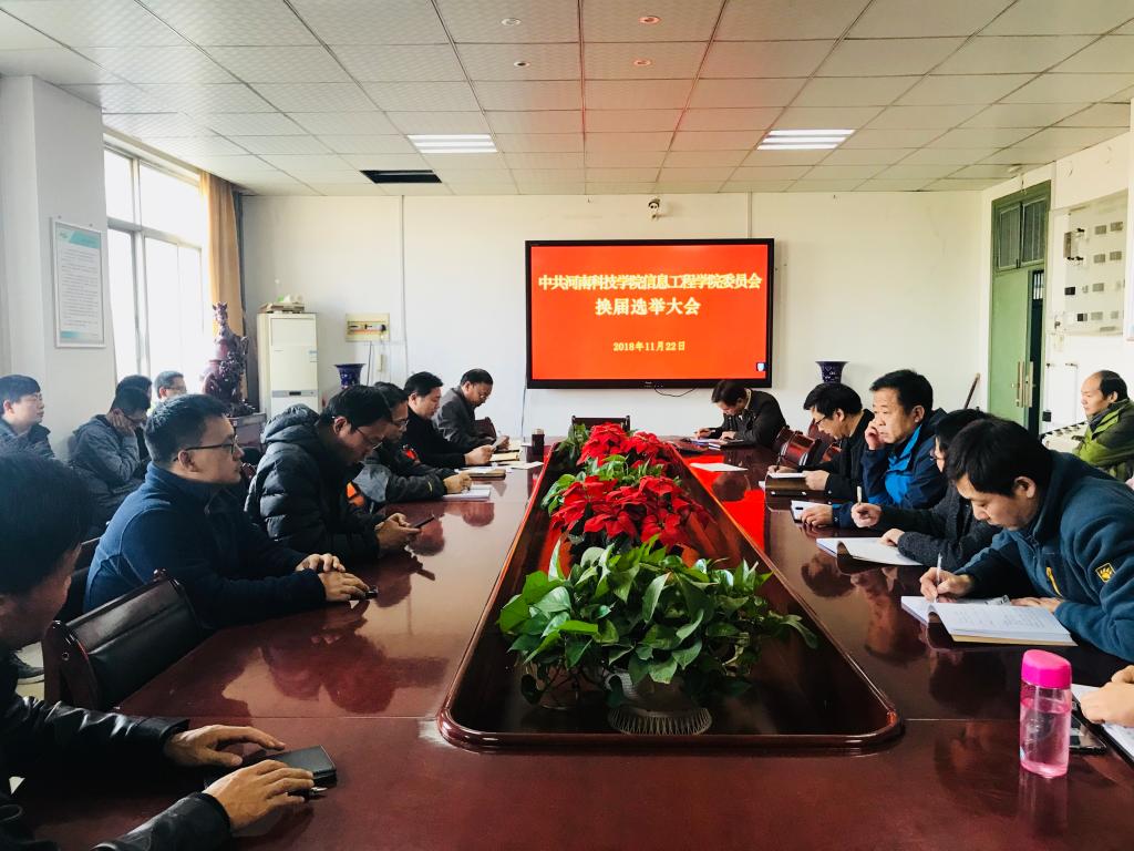 11月22日,信息工程学院召开学院党委换届选举大会,全体教工党员及部分学生党员代表参加大会。会议由张建设主持。