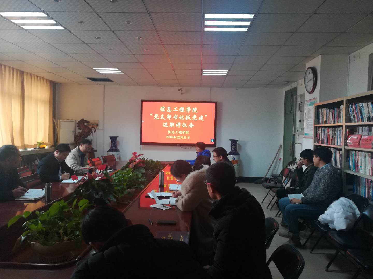 根据校党委组织部要求,12月25日,信息工程学院党委在0号楼502会议室召开党支部书记抓党建工作述职评议会议,学院党委书记郎瑞红主持会议并讲话,全体党委委员参加会议并对党支部书记工作进行评议,部分支委和党员群众代表参加评议会。