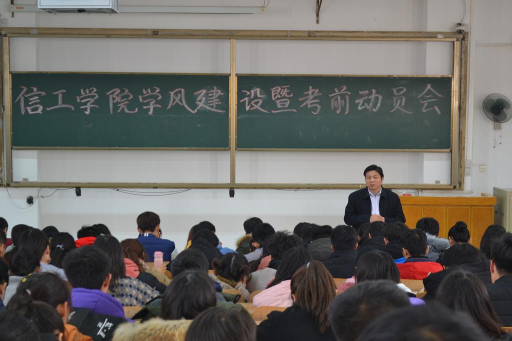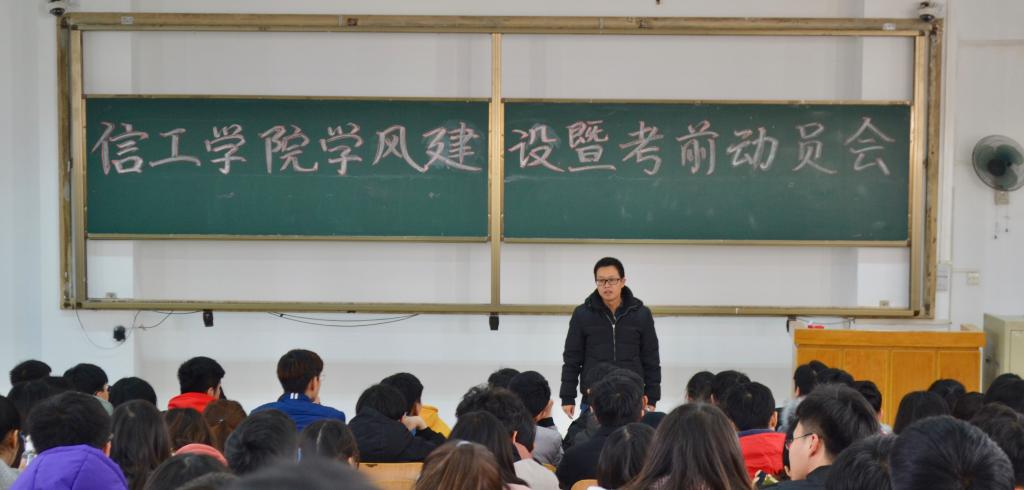 为提升我院学风建设,鼓励同学们积极备考,12月26日在0#合四举行了信息工程学院召开学风建设暨考前动员会。党委副书记张建设,团委书记苏东阳和辅导员袁家祺出席了此次会议,全体学生干部参加会议。