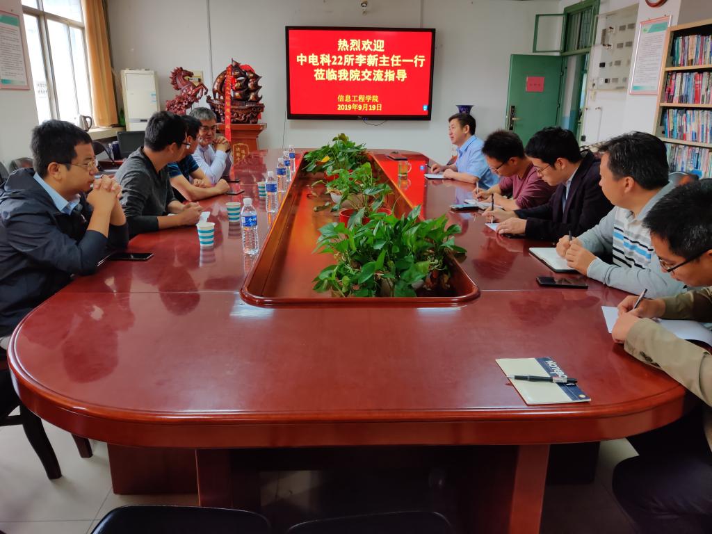 9月19日,信息工程学院与中国电子科技集团公司第二十二研究所创新服务中心副主任李新一行在0号楼502会议室就科研合作进行交流。会议由信息工程学院院长李国厚主持。