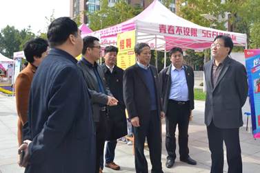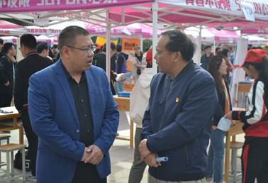 副校长冯启高亲临招聘会现场指导工作,与承办单位进行交流,了解参会企业以及招聘岗位情况。