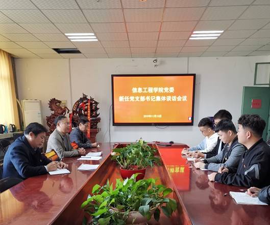 11月15日,在0号楼502会议室,信息工程学院党委组织召开了新任党支部书记集体谈话会议。信息工程学院党委成员和新任党支部书记参加会议,会议由党委书记郎瑞红主持。
