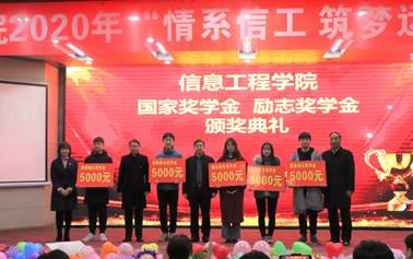 12月25日晚,我院“情系信工,筑梦远航”国家奖学金、励志奖学金颁奖典礼暨2020年元旦晚会在图教201举行,学生处副处长张晓云,校团委副书记栗宁,信息工程学院院长李国厚,党委副书记张建设、副院长余周、高国红,团委书记王明艳,全体辅导员及2019级300余人参加了此次晚会。